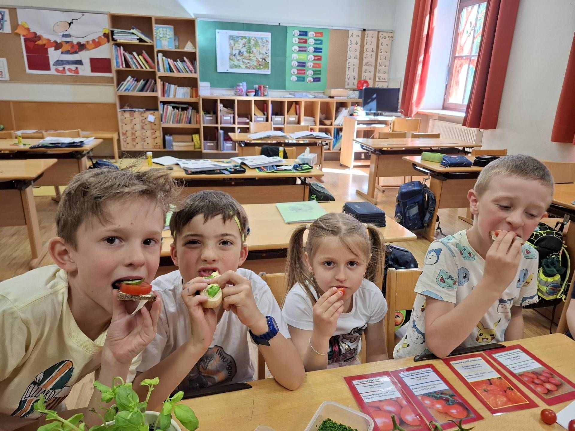 In dieser Woche haben sich unsere 2. Klasse intensiv mit dem Thema Tomate beschäftigt. Sie haben viel darüber gelernt, wie Tomaten wachsen, welche Sorten es gibt und warum sie so gesund sind. Natürlich durften die Schüler:innen sie auch verkosten.