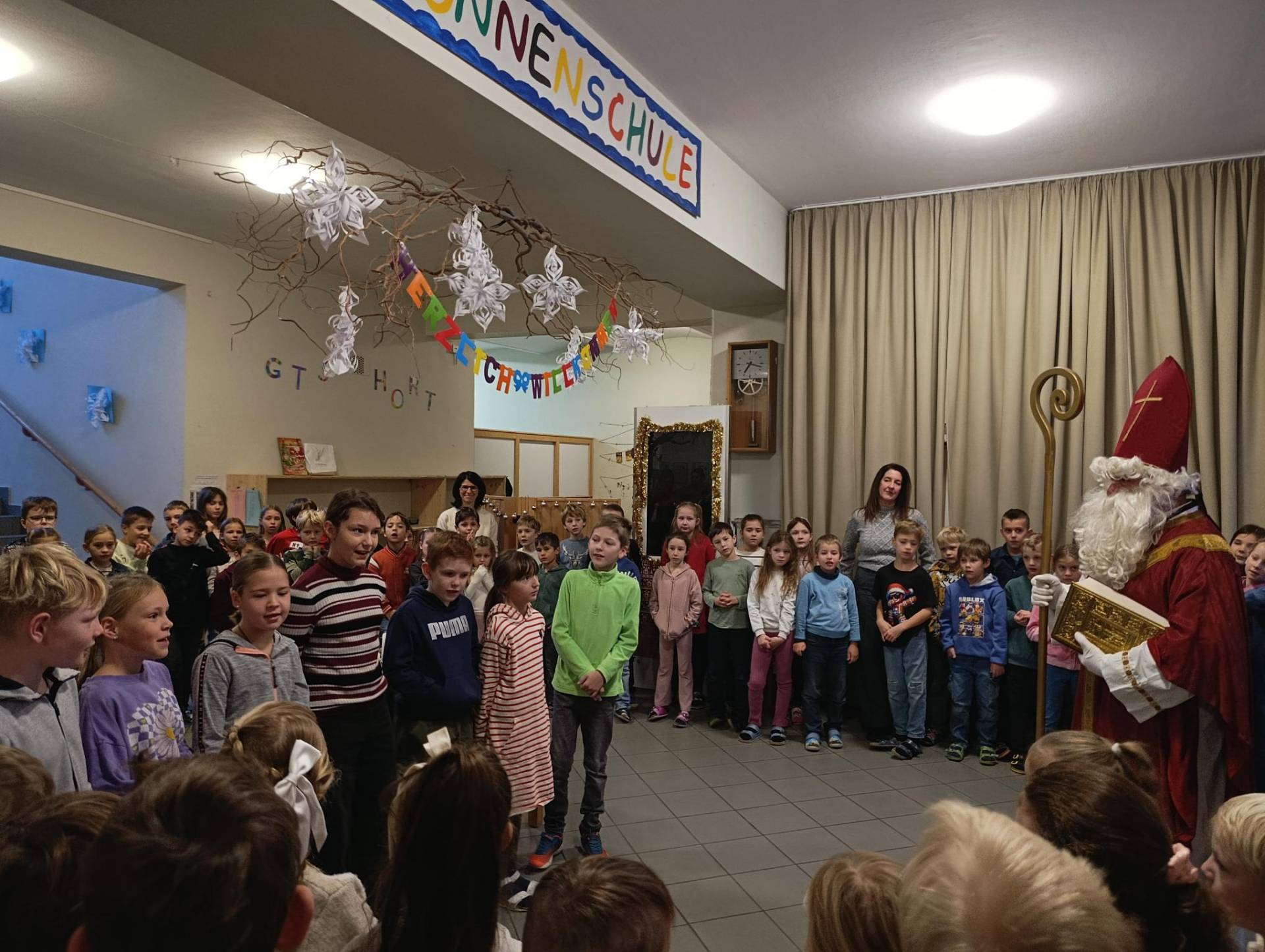 Am 5.12 bekamen wir ganz besonderen Besuch: Der Nikolaus schaute bei uns vorbei! Mit seinem großen roten Mantel und einem Sack voller Überraschungen sorgte er sofort für strahlende Gesichter. Gemeinsam sangen wir fröhliche Weihnachtslieder und einige Kinder trugen ihre Gedichte vor.