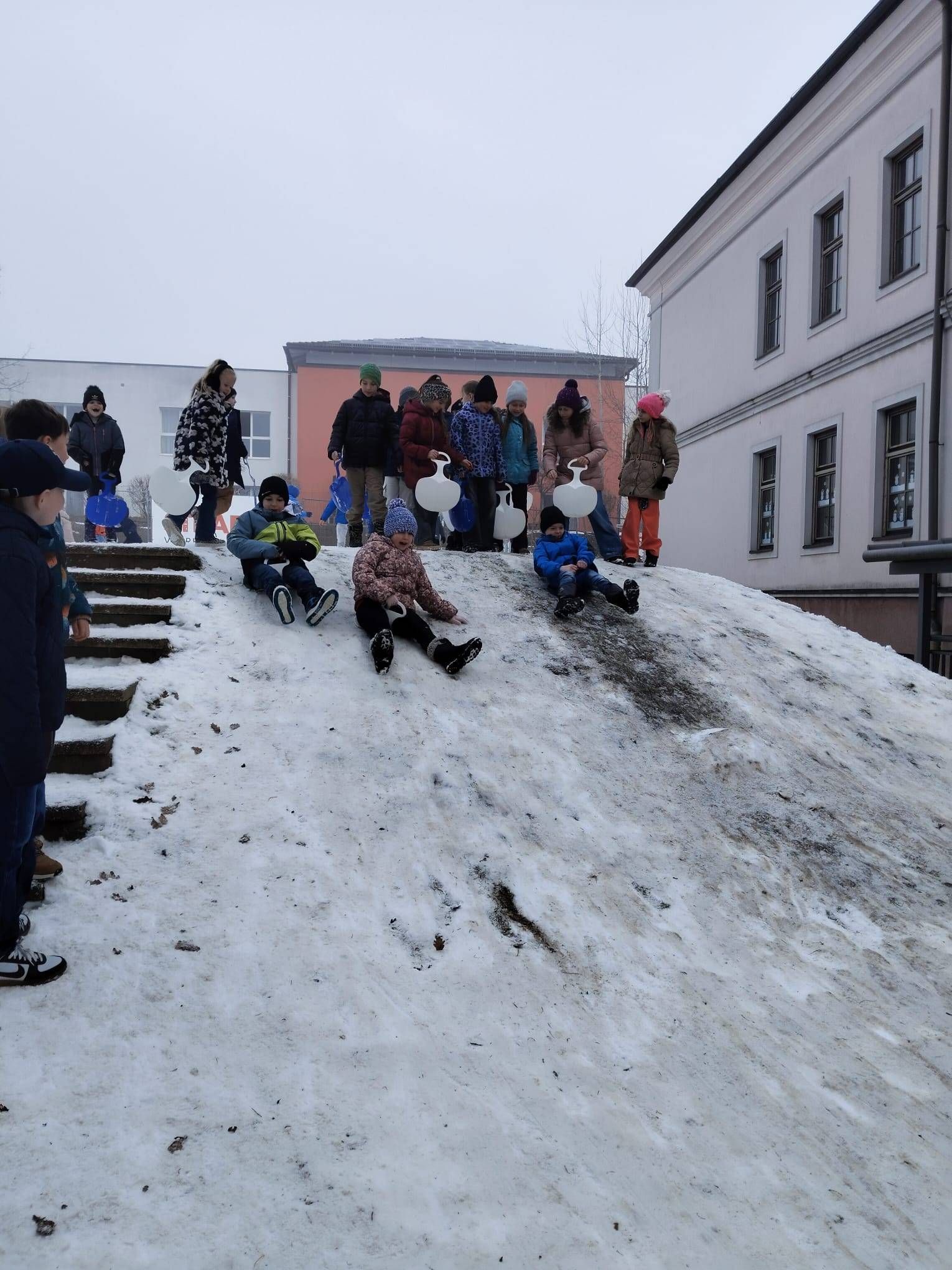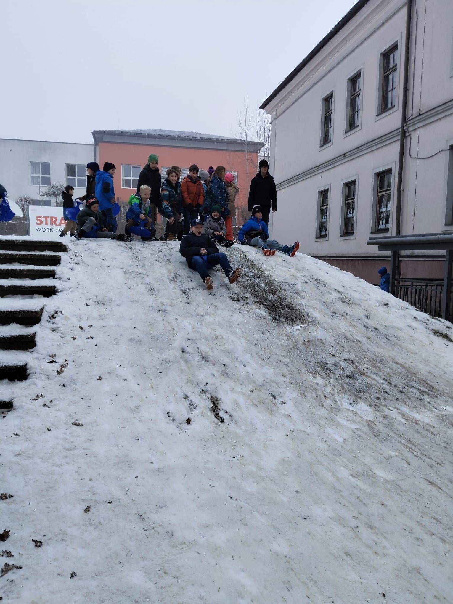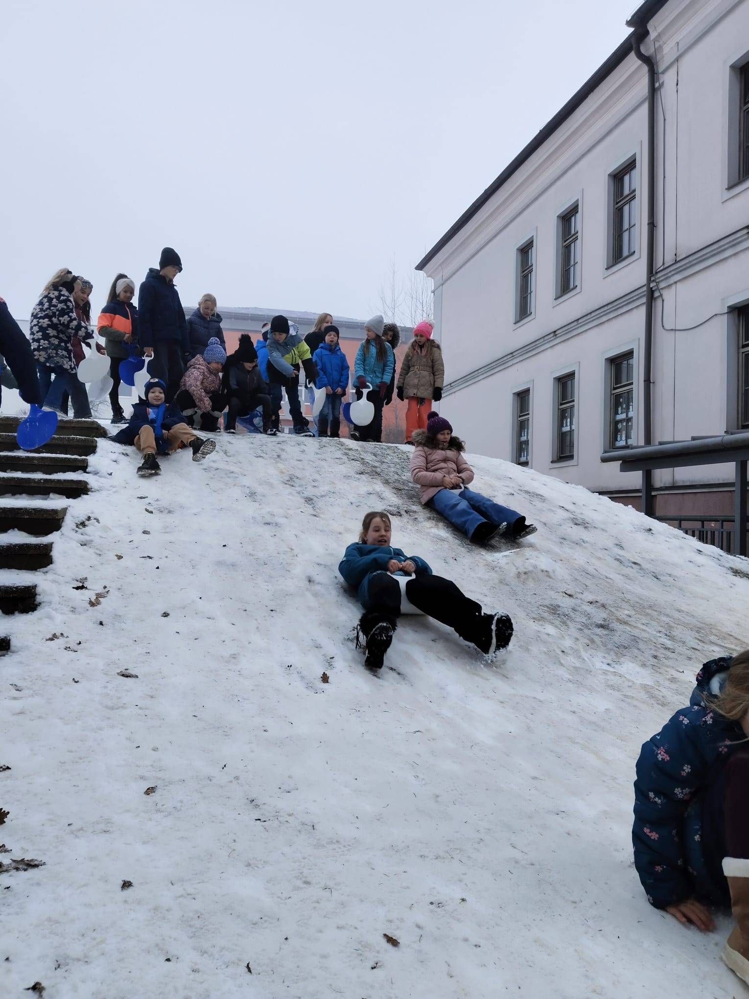 In der Pause hatten die Kinder viel Spaß am Pausenhof beim Rutschen mit den Rutschblättern.